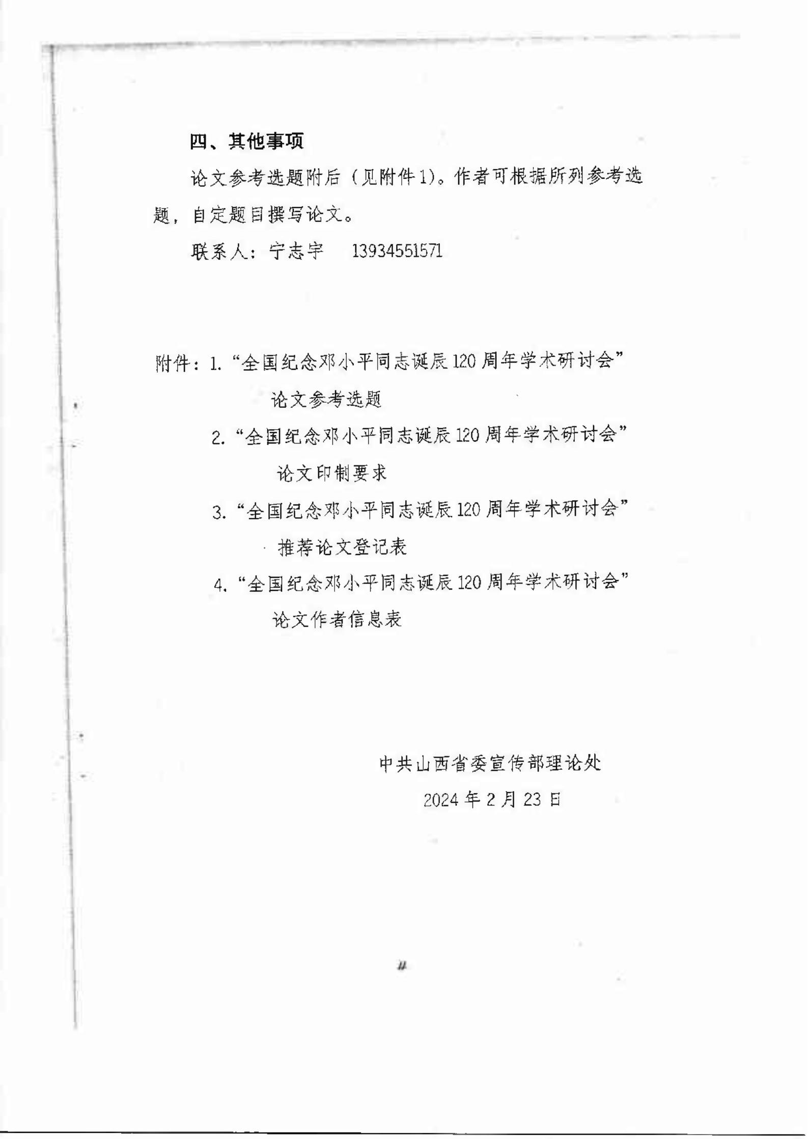 关于做好“全国纪念邓小平同志诞辰120周年学术研讨会”论文推荐工作的通知