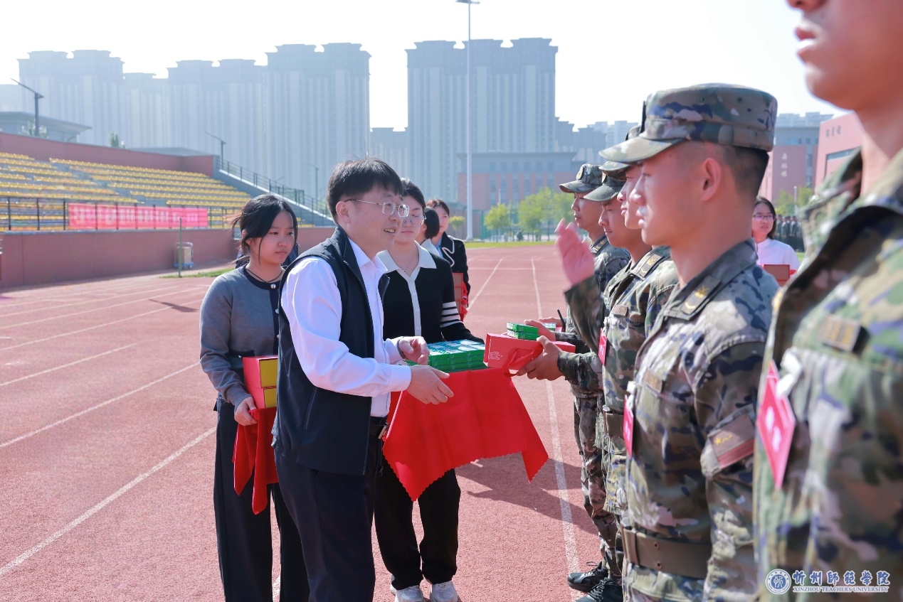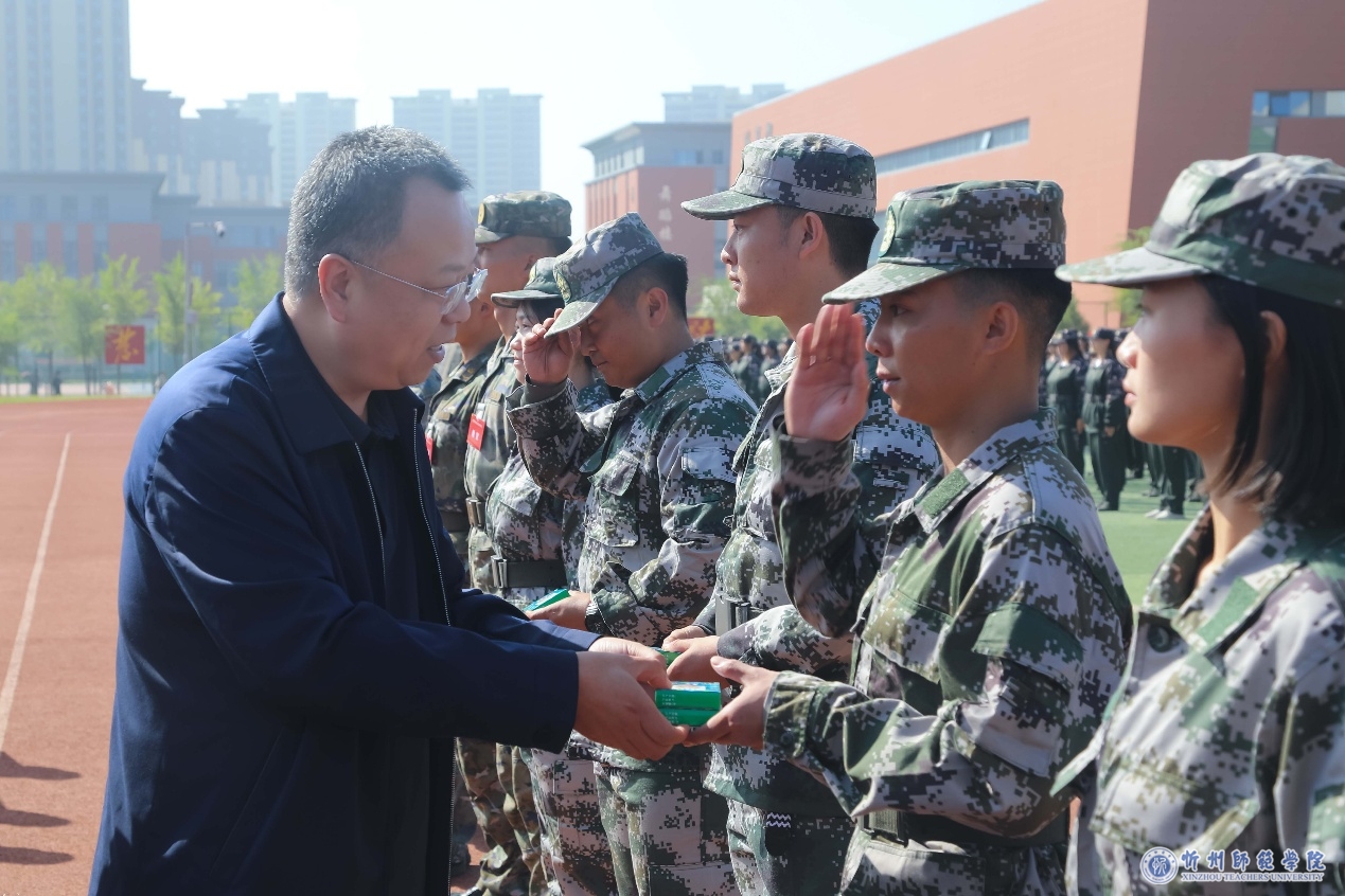 李新在慰问中指出,军事训练是学生大学生涯的重要一课,是我们落实立德树人根本任务、加强爱国主义教育和国防教育的重要环节。做好学生军事训练工作是全校共同的责任,各有关部门要搞好统筹协调,各系(院)要履职尽责,在训练资源保障、演训任务配合等方面满腔热忱给予参训教官有力支持,切实把这项工作抓紧抓好、抓出成效,真正发挥好学生军训综合育人功能,为忻师凝聚起矢志报国的强大力量。