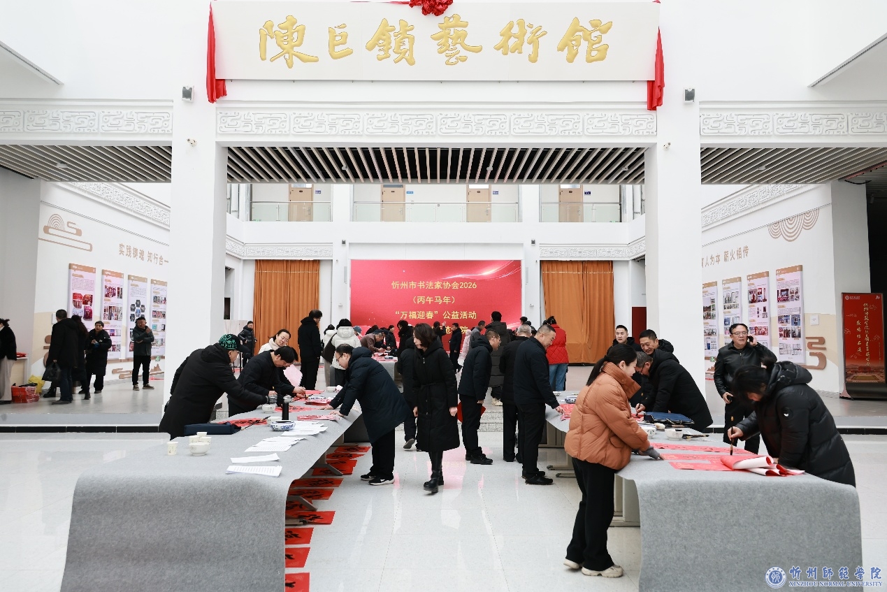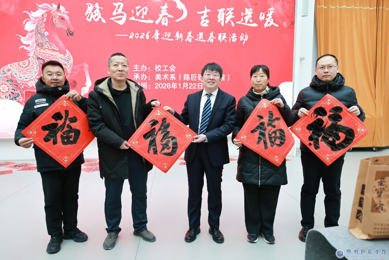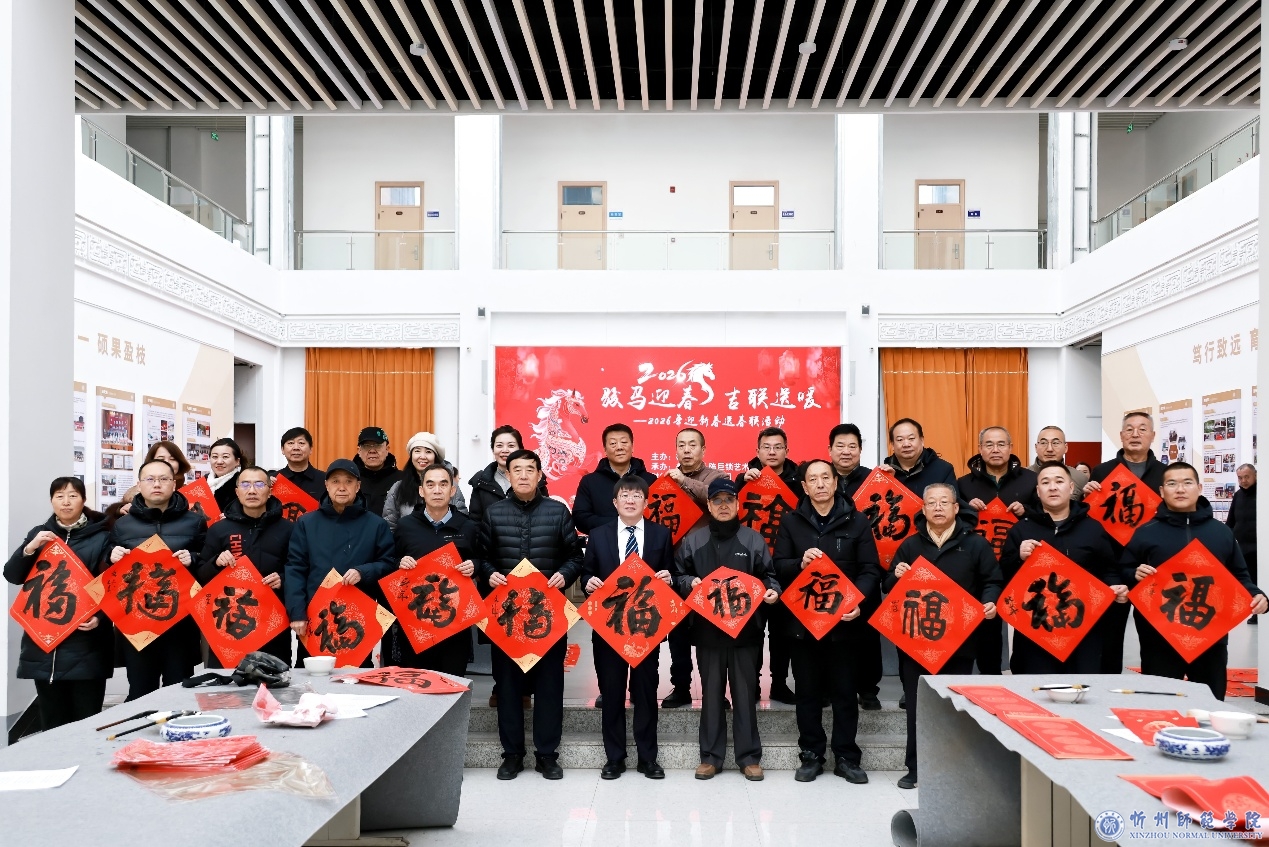 弦歌雅乐庆新岁,翰墨流芳颂华年。1月22日,由我校工会主办、美术系(陈巨锁艺术馆)承办的“骏马迎春 吉联送暖”迎新春送春联活动在陈巨锁艺术馆举行。党委书记乔永生,党委副书记张文玉等校领导出席活动。活动特邀忻州市书法家协会18名知名书法家出席,与我校美术系书法专业师生联袂创作,共同为全校教职工挥毫送福,喜迎丙午马年新春。